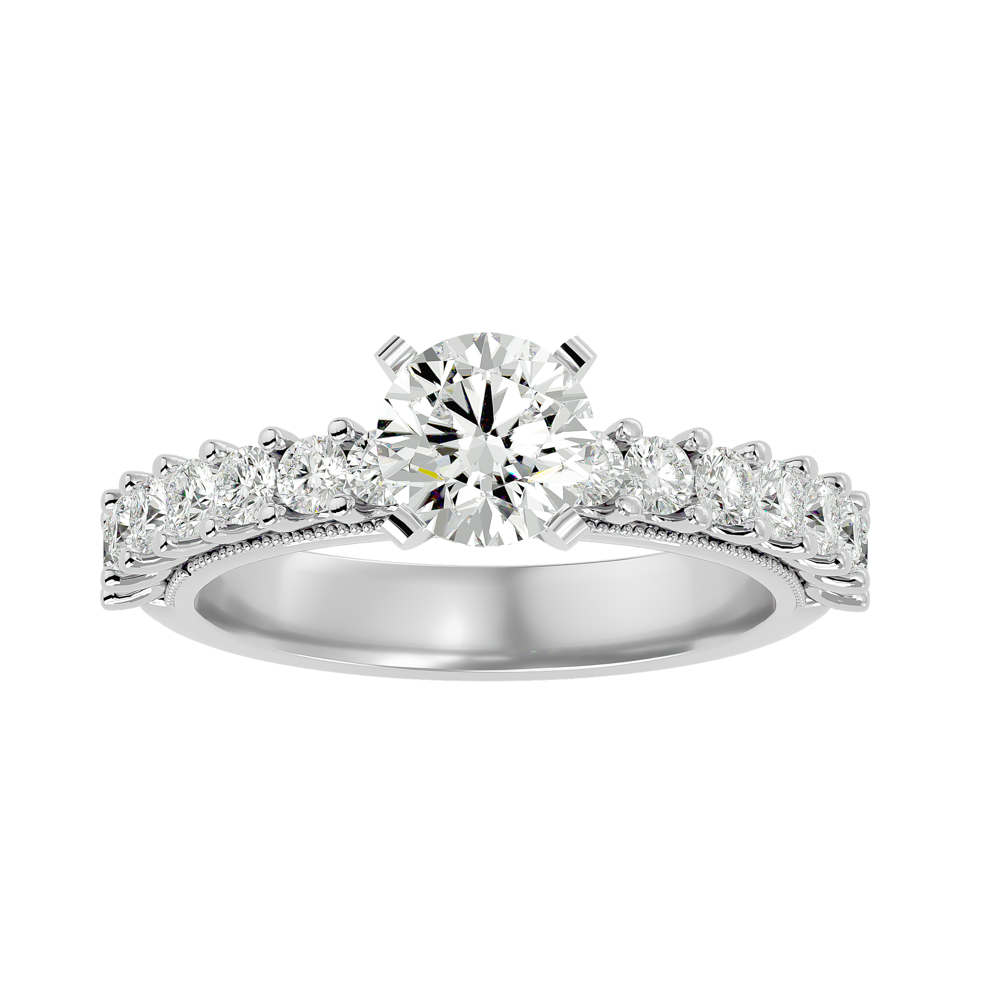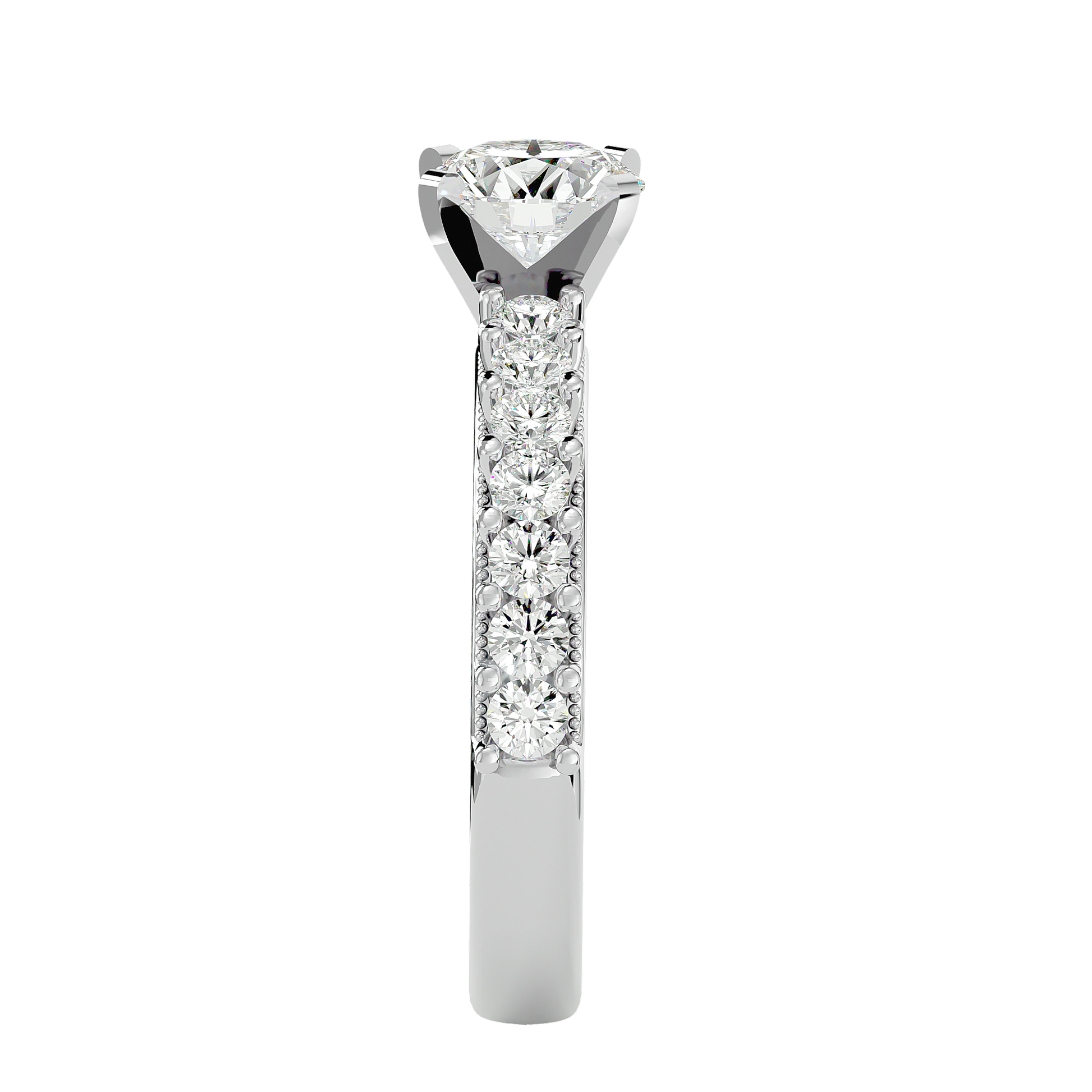 An elegant engagement ring featuring a natural 0.72ct diamond in a classic setting. The balanced design highlights the stone’s brilliance, conveying refined elegance and gentle luxury.