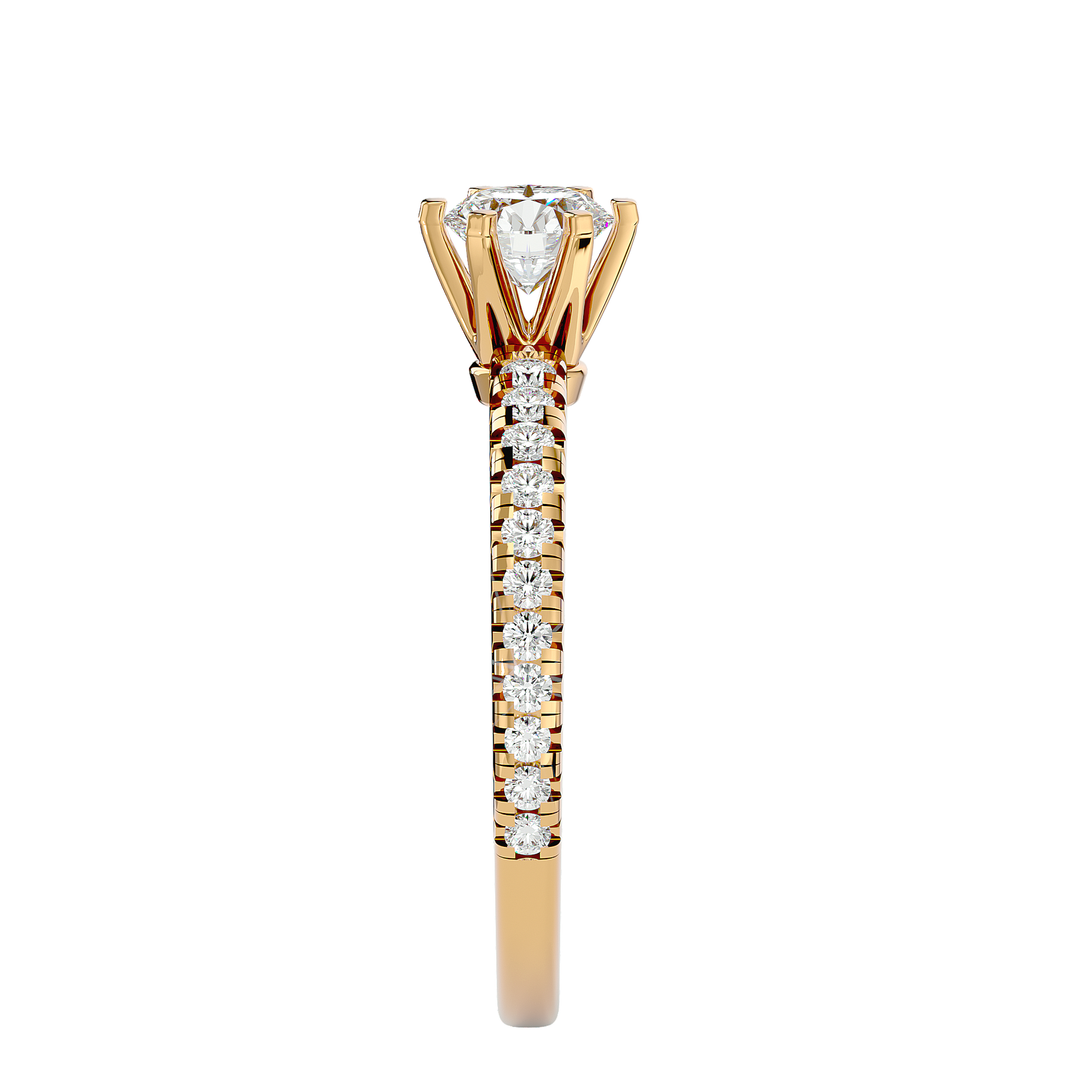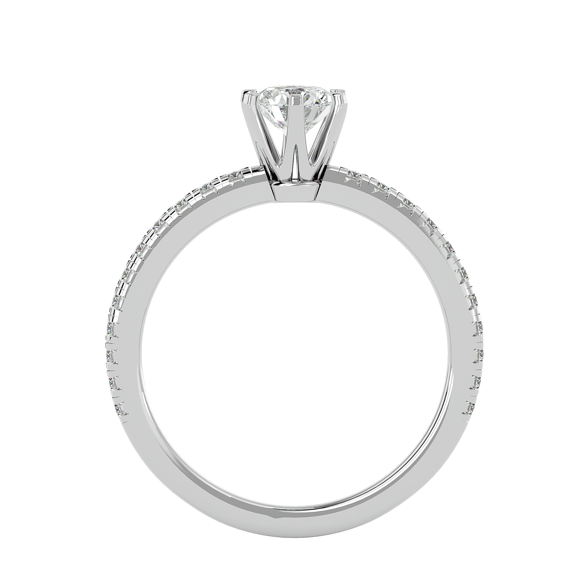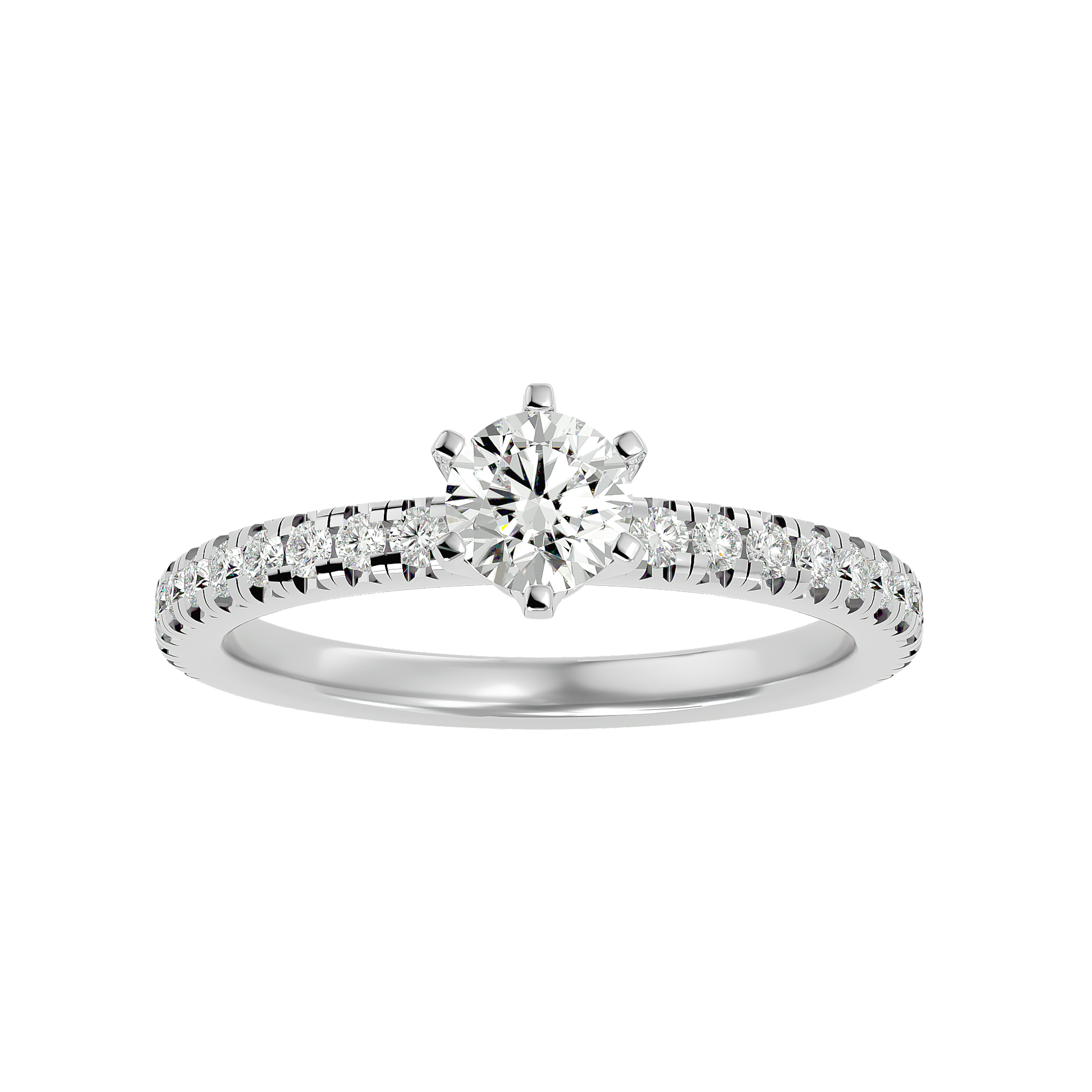An elegant engagement ring featuring a natural 0.73ct diamond in a classic setting. The balanced design highlights the stone’s brilliance, conveying refined elegance and gentle luxury.