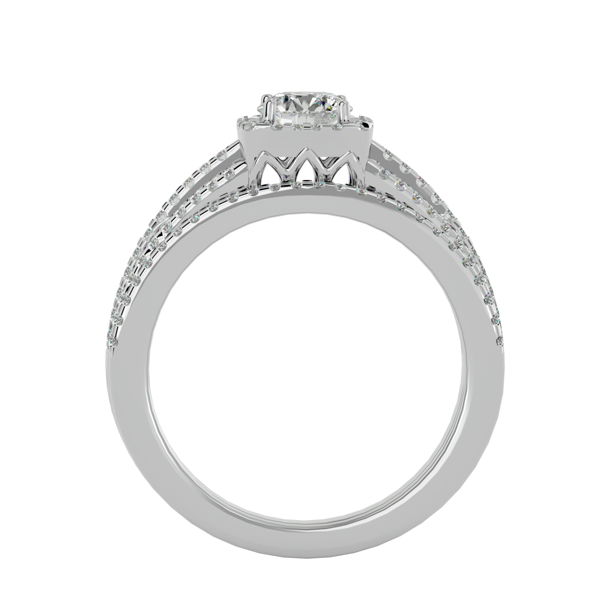 An elegant engagement ring featuring a natural 0.59ct diamond in a classic setting. The balanced design highlights the stone’s brilliance, conveying refined elegance and gentle luxury.