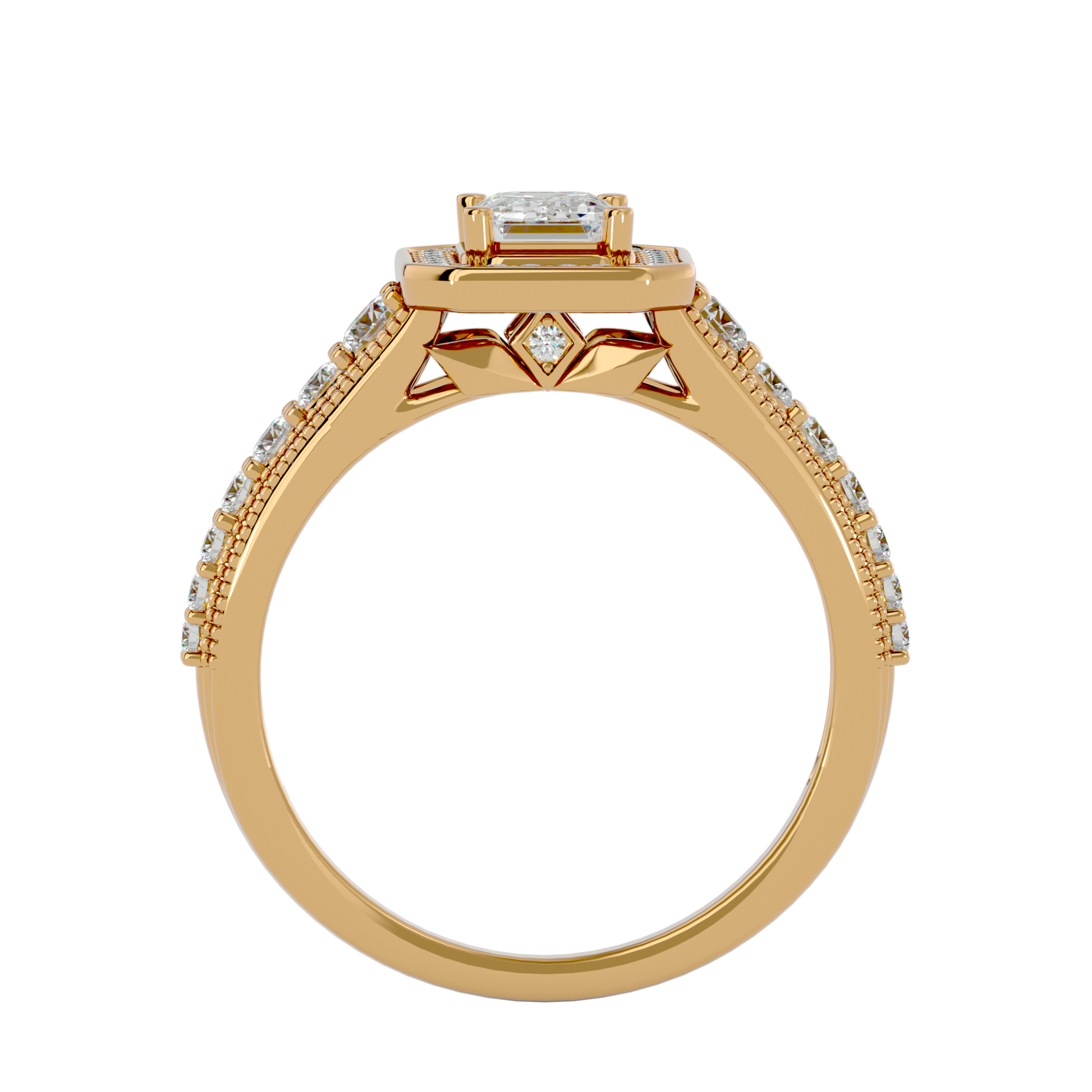An elegant engagement ring featuring a natural 0.77ct diamond in a classic setting. The balanced design highlights the stone’s brilliance, conveying refined elegance and gentle luxury.
